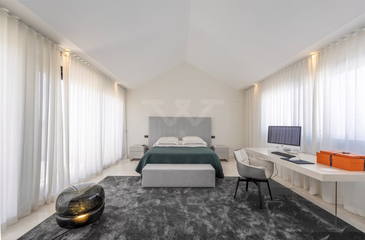 Kuchnia Arclinea zaprojektowana przez Antonio Citterio, garderoba typu walk-in o powierzchni 36 m² (Uecko), prywatna strefa wellness i rozrywki.