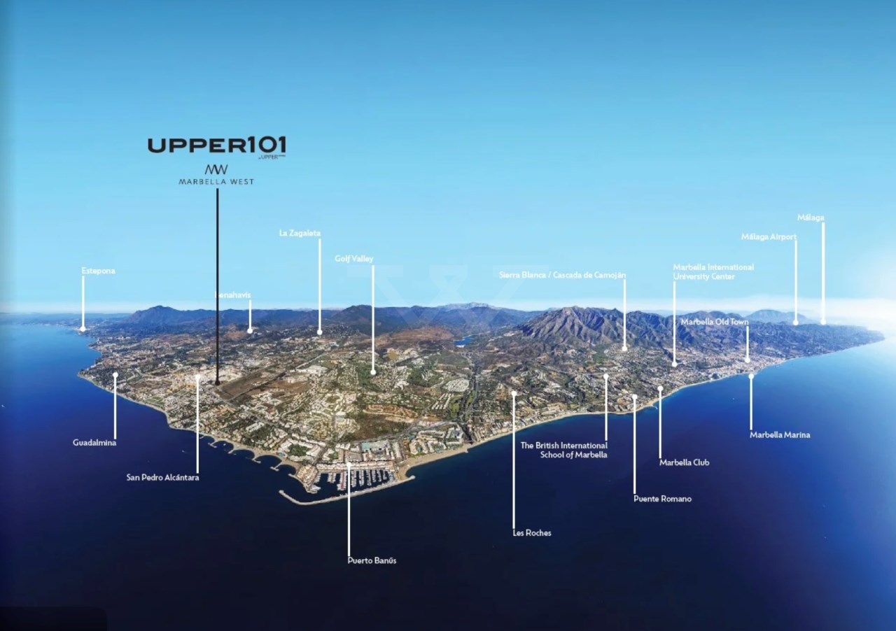 Upper101 znajduje się pomiędzy Nueva Andalucía a San Pedro de Alcántara, z doskonałym dostępem do najważniejszych punktów: