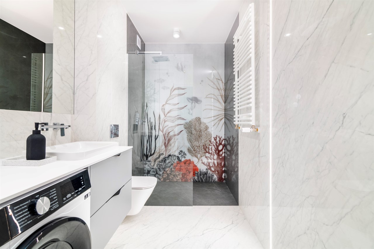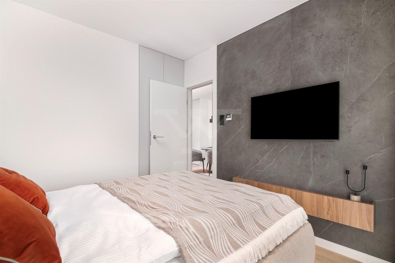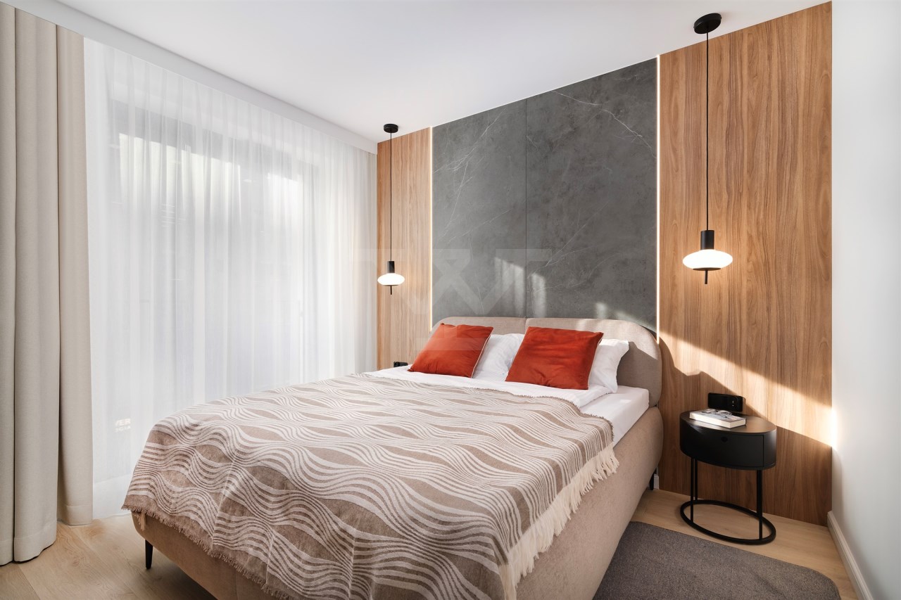 Mieszkanie zostało starannie wykończone w podwyższonym standardzie, z dbałością o detale i funkcjonalność. Jasna przestrzeń dzienna z dostępem do balkonu tworzy przyjemne miejsce do wypoczynku. Wnętrze jest wyposażone w klimatyzację, która zapewnia komfort przez cały rok.