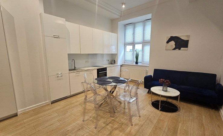 Posiadamy na wynajem 2 pokojowy apartament na ul. Lubartowskiej na pierwszym piętrze w odrestaurowanej kamienicy z windą .Na 55 mkw znajduje się słoneczna kuchnia ( wyposażona w niezbędny sprzęt: zmywarka , piekarnik , płyta dwupalnikowa, okap oraz drobne wyposażenie kuchenne) połączona z salonem wyposażonym w kanapę , stoliki kawowe oraz TV z internetem .