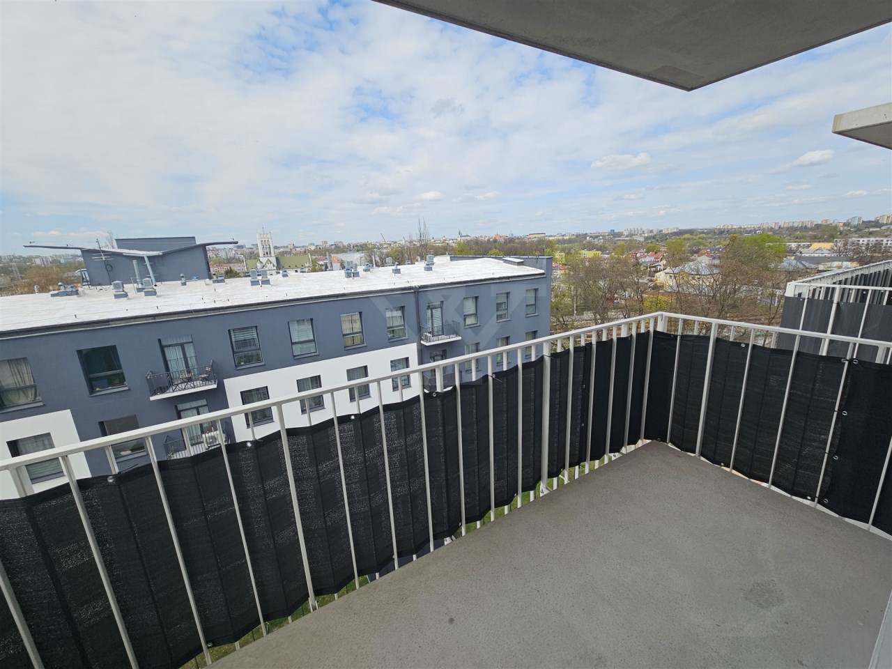 Z mieszkania jest wyjście na duży balkon, z którego rozciąga się widok na panoramę Starego Miasta – idealne miejsce na relaks.