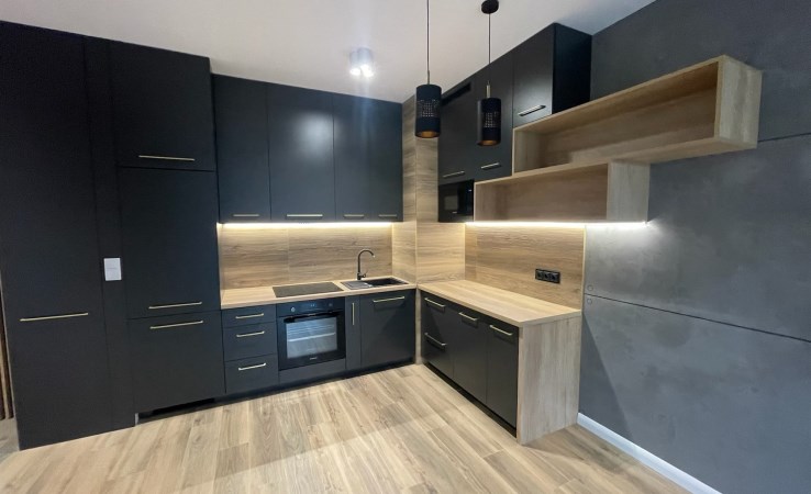 salon z aneksem kuchennym (zmywarka, płyta indukcyjna, lodówka, pralka),