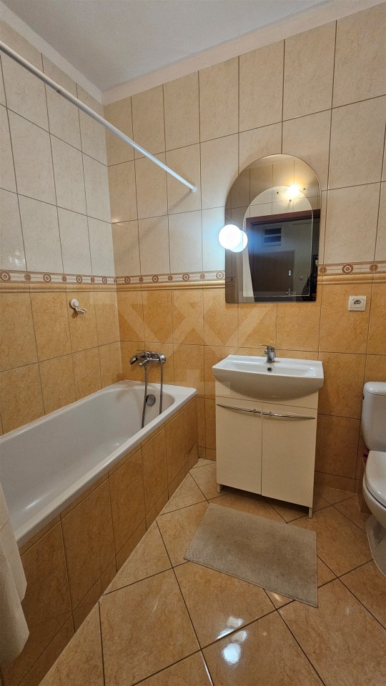 łazienka połączona z WC, wyposażona w wannę