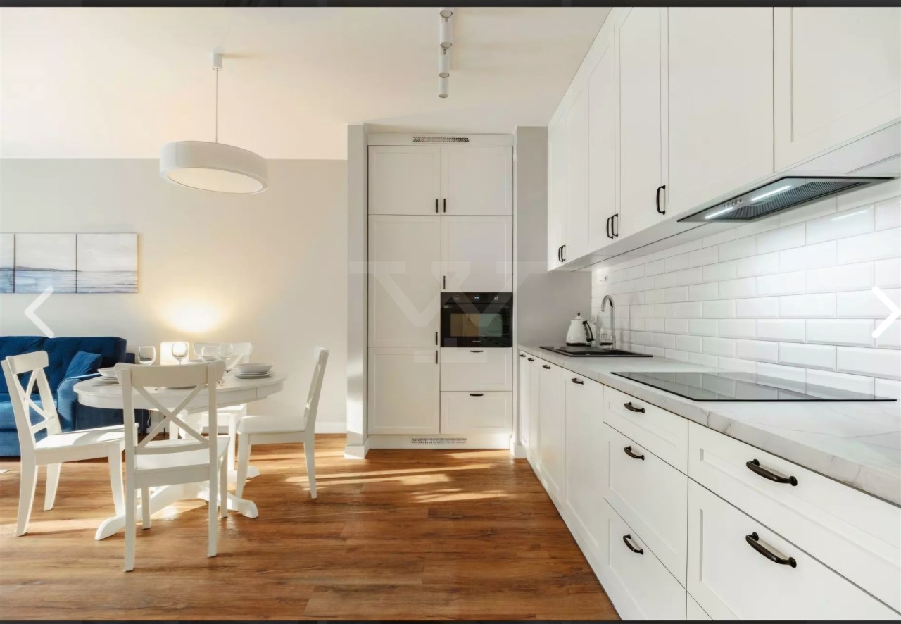 Wnętrze zostało zaprojektowane z dbałością o detale. Salon urządzono w nowoczesnym stylu, z w pełni wyposażonym aneksem kuchennym (lodówko-zamrażarka, zmywarka, piekarnik, okap, płyta grzewcza). W mieszkaniu zastosowano wysokiej jakości materiały wykończeniowe – na podłogach panele, w łazience elegancka glazura.