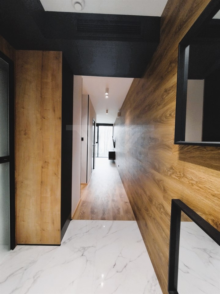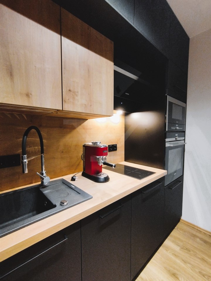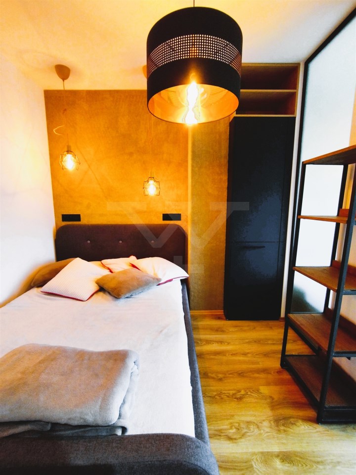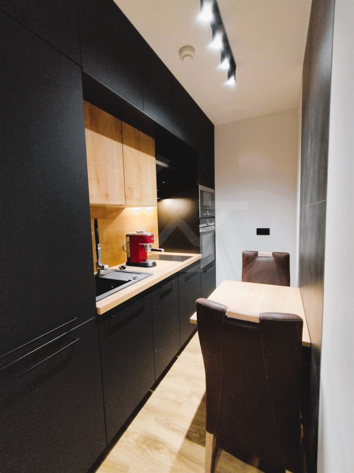 Mieszkanie składa się z nowoczesnego aneksu kuchennego (w pełni wyposażony: zmywarka, piekarnik, mikrofalówka, lodówka),salonu, sypialni, łazienki z prysznicem i wc, o łącznej powierzchni 42 mkw. Mieszkanie wykończone w wysokim standardzie z użyciem nowoczesnych mebli i materiałów, w pełni wyposażone w sprzęt AGD i RTV.