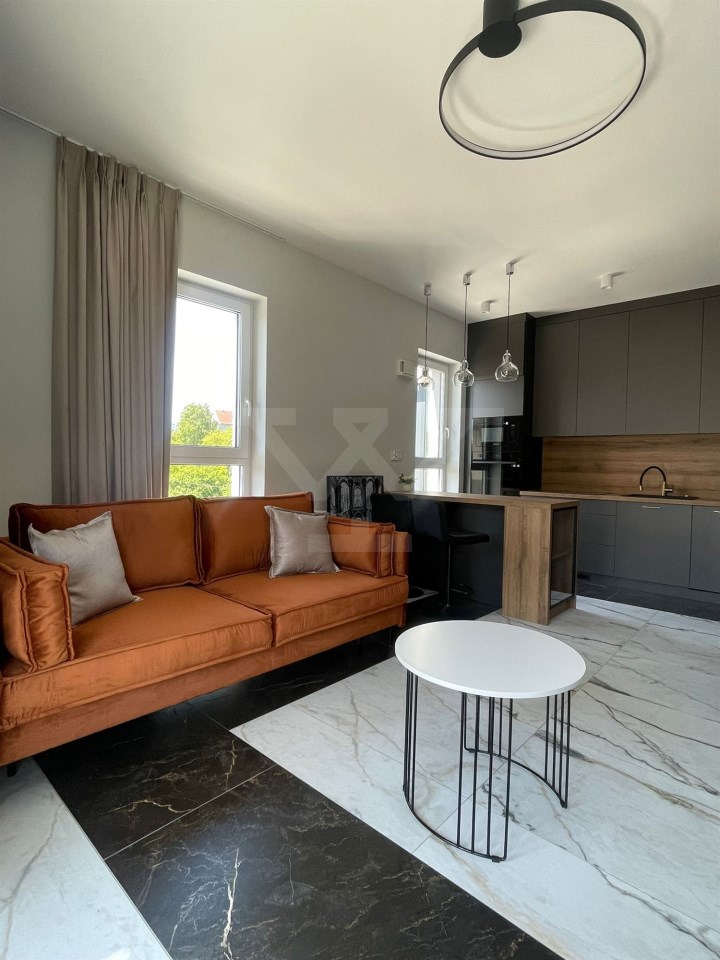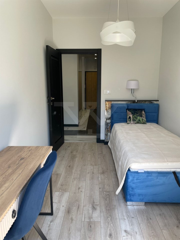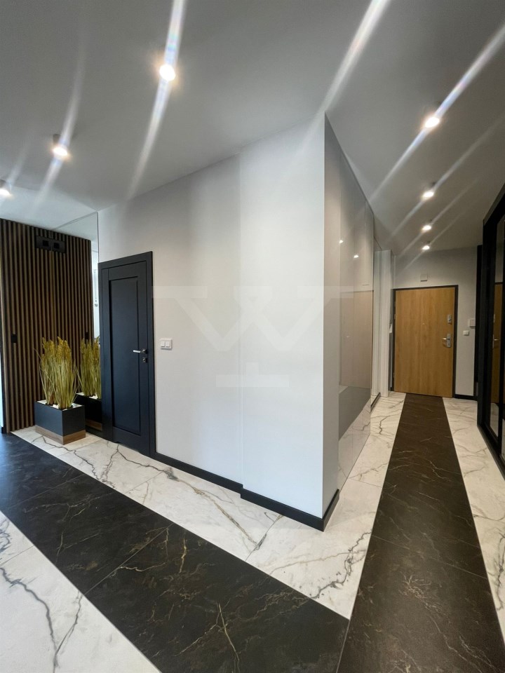 Nowoczesna bryła budynku, funkcjonalność części wspólnych, tym cichobieżne windy, szerokie schody, duży hol, jasne oświetlenie. Apartament usytuowany na 1 piętrze , na powierzchni 69 mkw znajduje się salon z aneksem kuchennym wyposażony w nowoczesne sprzęty , dwie sypialnie oraz łazienka z kabiną prysznicową ,przedpokój z dużą ilością szaf w zabudowie. Dodatkowym atutem mieszkania jest klimatyzacja oraz taras z zielenią .