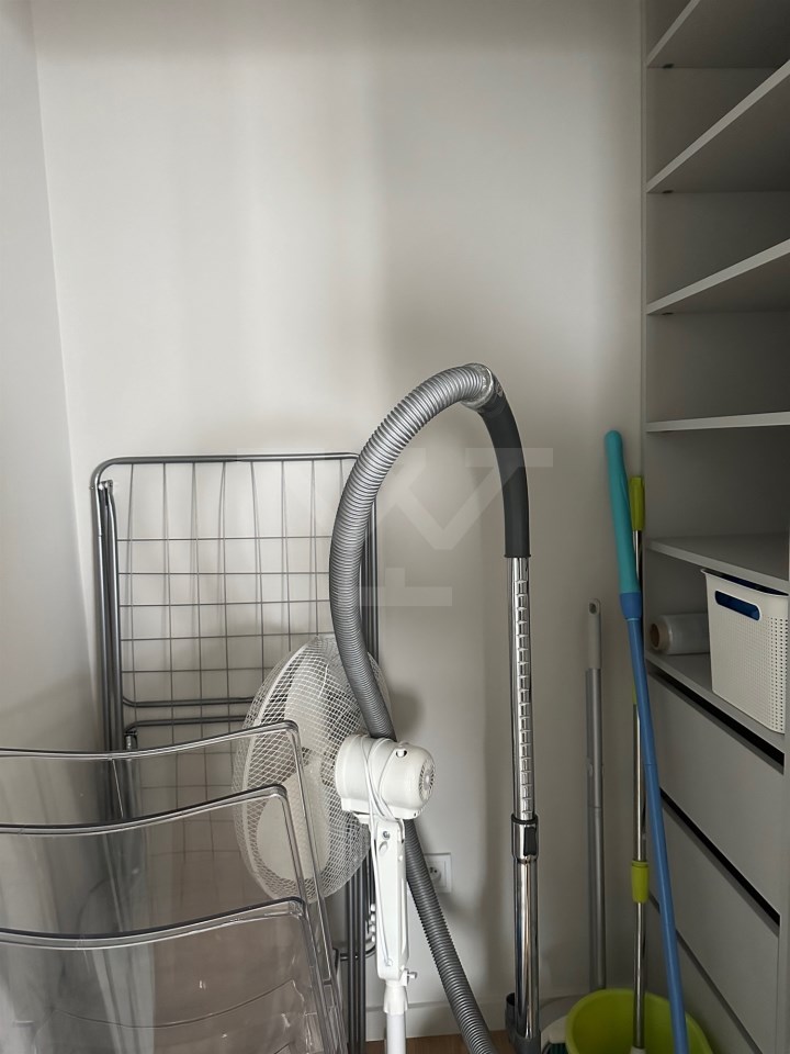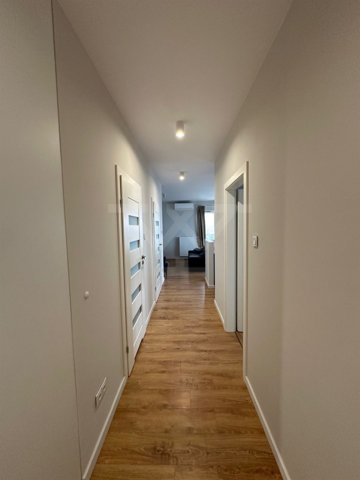 Mieszkanie składa się z nowoczesnego aneksu kuchennego (w pełni wyposażonej) otwartego na salon (z wyjściem na balkon), dwóch sypialni (jedna może służyć jako gabinet), łazienki z wanna i wc, bidetem oraz dodatkowej toalecie z pralnią o łącznej powierzchni 74 mkw. Mieszkanie wykończone w nowoczesnym standardzie z użyciem nowoczesnych mebli i materiałów, w pełni wyposażone w sprzęt AGD i RTV.