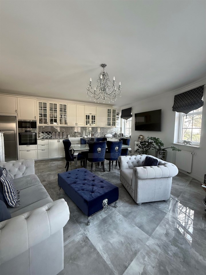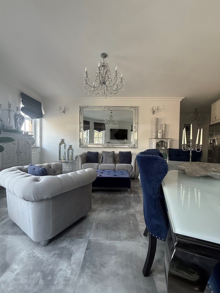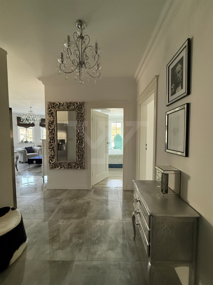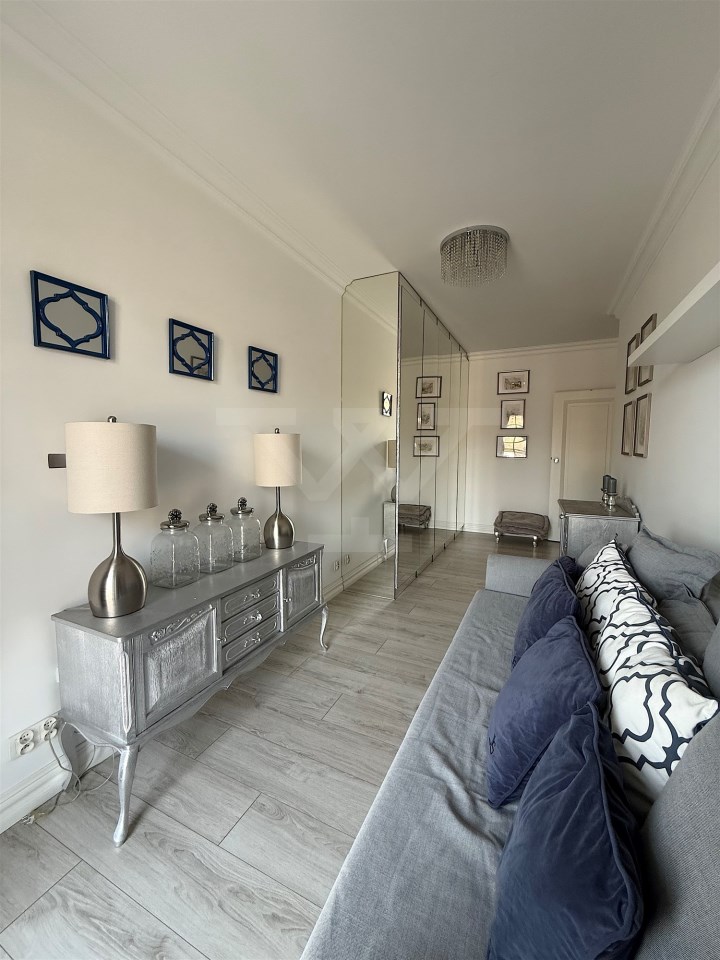 Wnętrze urządzone w eleganckim stylu glamour. Mieszkanie jest bardzo dobrze doświetlone dzięki dużej liczbie okien (mieszkanie narożne)