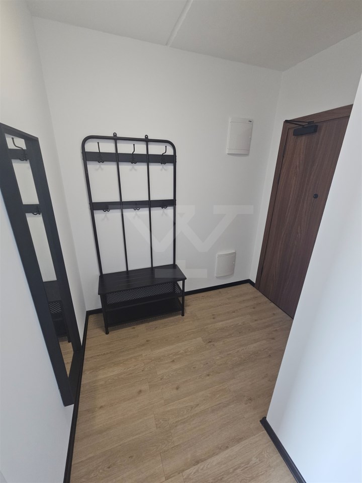 W przedpokoju dostępny jest wieszak na odzież oraz półka na obuwie.