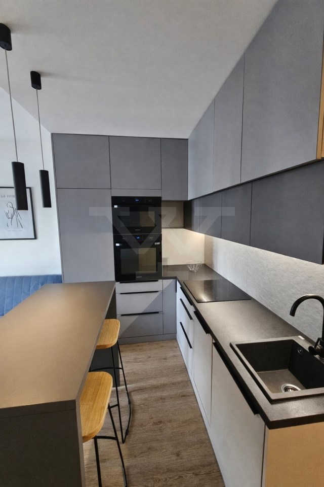 Mieszkanie zostało wykończone w bardzo dobrym standardzie i zaprojektowane tak, aby zapewnić maksymalną funkcjonalność. Składa się z salonu z aneksem kuchennym, oddzielnej sypialni oraz łazienki. Dodatkowymi atutami są: balkon, komórka lokatorska oraz miejsce parkingowe w garażu podziemnym – wliczone w cenę najmu. W lokalu znajduje się dużo przestrzeni do przechowywania – pojemne szafy w sypialni, przedpokoju i łazience pozwalają na wygodne zagospodarowanie rzeczy.