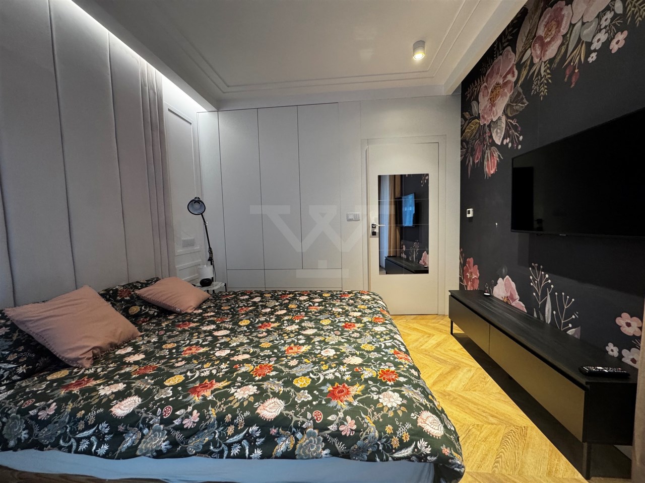 Sypialnia z dużą szafą w zabudowie