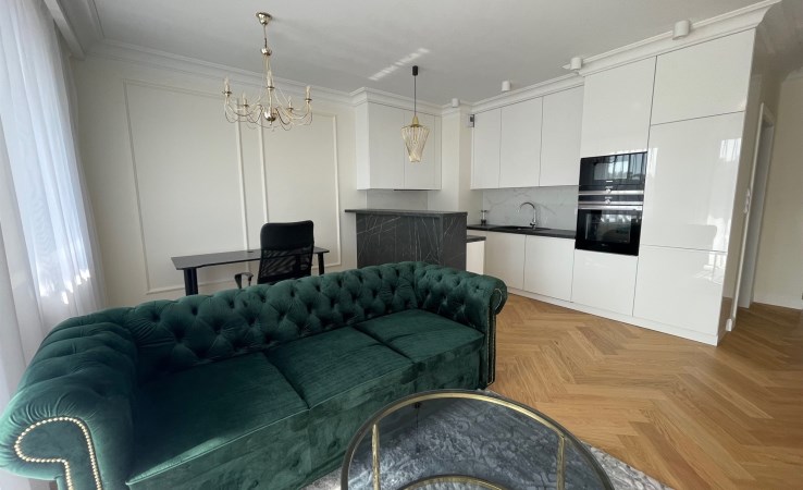 Apartament mieści się w nowoczesnym budynku z windą, położonym w samym centrum miasta – tuż przy Placu Litewskim.