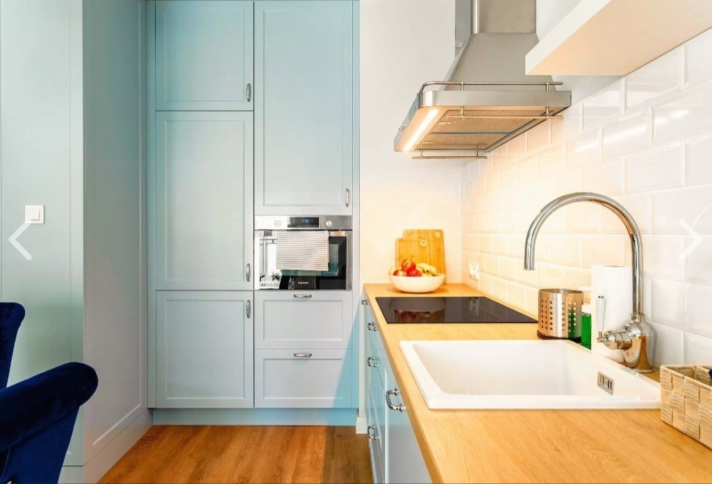 nowoczesna kuchnia z pełnym wyposażeniem (w tym zmywarka),