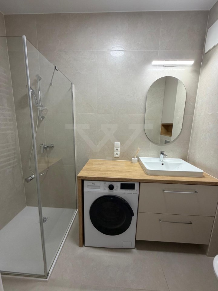 Lokal jest w pełni umeblowany i wyposażony w sprzęt AGD (lodówka, kuchenka, piekarnik, pralka) — gotowy do wprowadzenia.