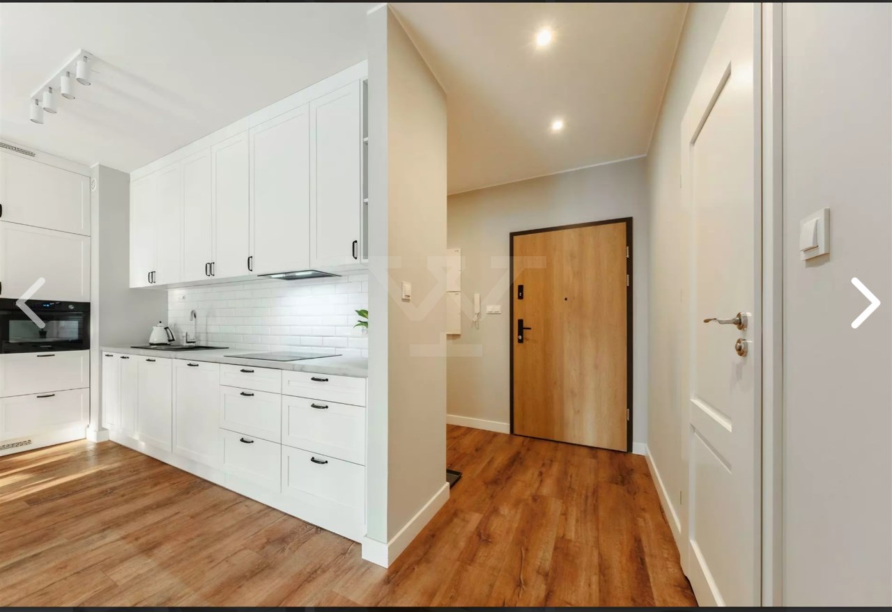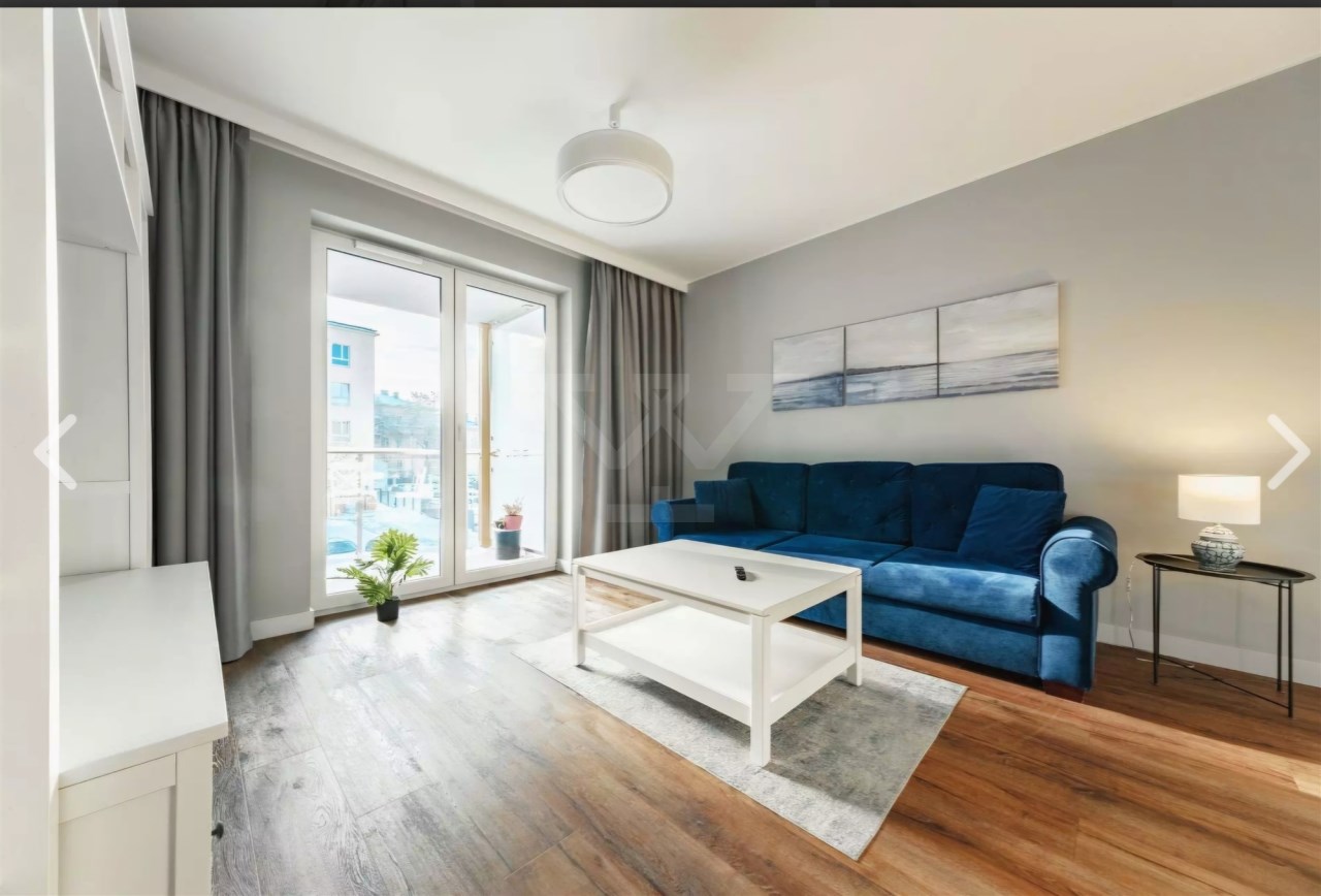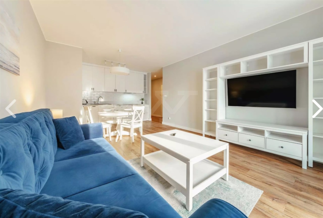 Wnętrze zostało zaprojektowane z dbałością o detale. Salon urządzono w nowoczesnym stylu, z w pełni wyposażonym aneksem kuchennym (lodówko-zamrażarka, zmywarka, piekarnik, okap, płyta grzewcza). W mieszkaniu zastosowano wysokiej jakości materiały wykończeniowe – na podłogach panele, w łazience elegancka glazura.