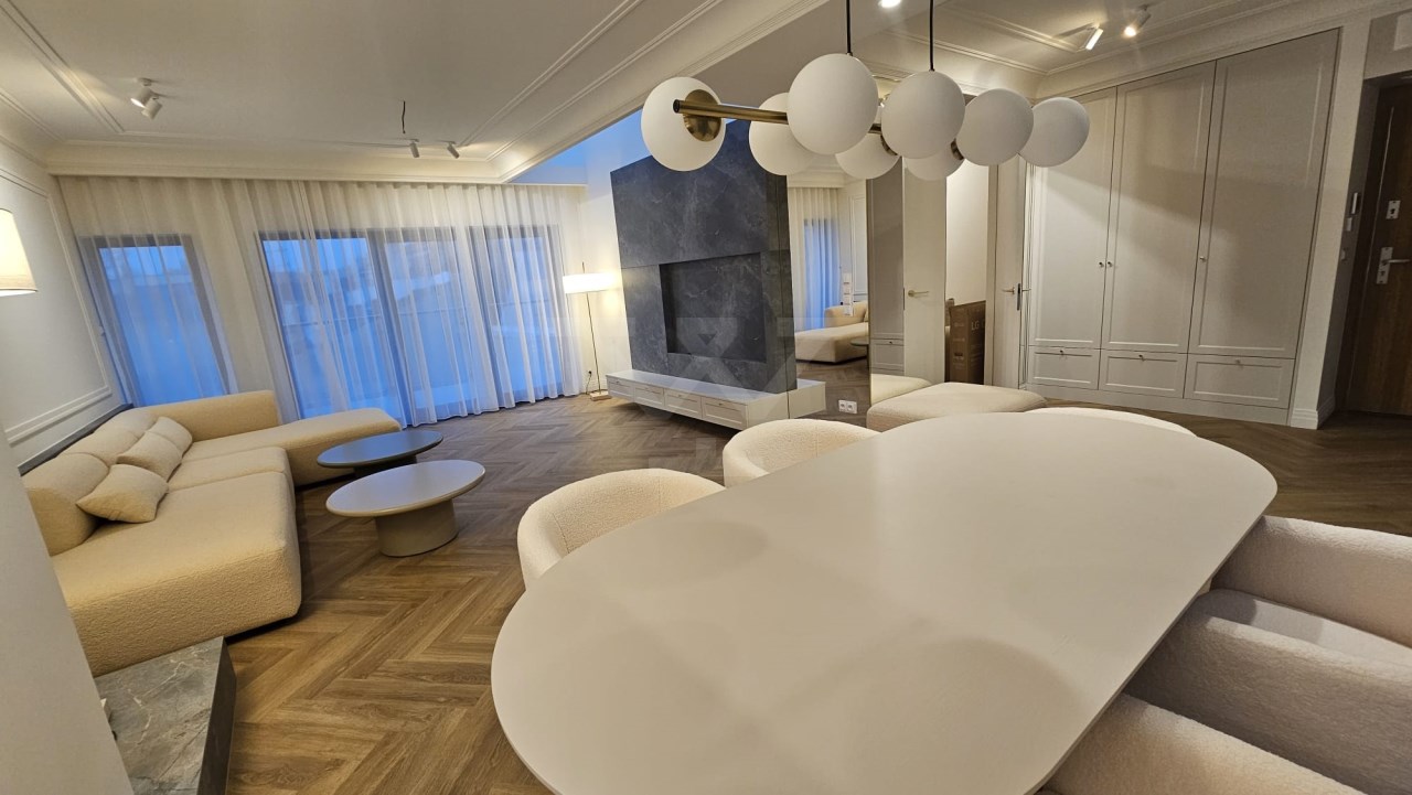Apartament został wykończony w bardzo wysokim standardzie, według projektu cenionego projektanta wnętrz. To idealna propozycja dla osób poszukujących komfortu, funkcjonalności oraz prestiżowej lokalizacji.