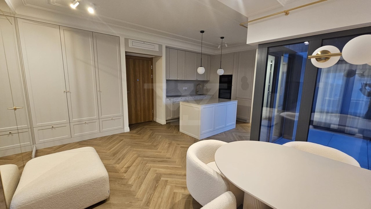 Mieszkanie nigdy wcześniej nie było wynajmowane – wszystkie elementy wyposażenia są nowe, starannie dobrane i utrzymane w spójnej, eleganckiej stylistyce. Dużym atutem jest znaczna ilość miejsca do przechowywania – funkcjonalne szafy w zabudowie oraz oddzielna garderoba zapewniają wygodę codziennego użytkowania.